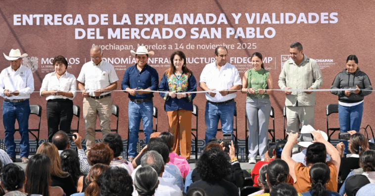 Cuernavaca, 14 de noviembre 2025 (Infórmate y +). – La gobernadora de Morelos, Margarita González Saravia, encabezó la inauguración de la explanada, área de estacionamiento y vialidad principal del Mercado Municipal San Pablo, en Axochiapan, como parte de una gira de trabajo por la región oriente del estado.