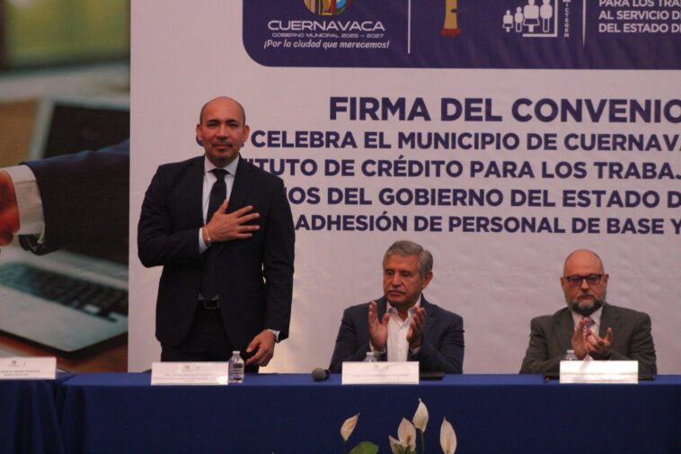 Cuernavaca, 18 de diciembre de 2025 (Infórmate).- El Gobierno del Estado de Morelos y el Ayuntamiento de Cuernavaca firmaron un Convenio de Incorporación que permitirá a 975 trabajadoras y trabajadores municipales acceder a las prestaciones económicas y sociales que otorga el Instituto de Crédito para los Trabajadores al Servicio del Gobierno del Estado de Morelos (ICTSGEM).